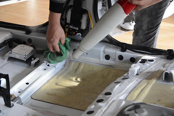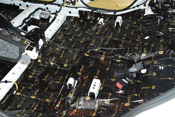汽車在行駛的時候底盤會產(chǎn)生較大的共振噪聲,然而原車底盤僅有幾塊簡單的止振板,這很難起到良好的止振效果;所以使用中道隔音對汽車底盤和后座底部做了第一層止振處理,中道隔音具有良好的止振效果,可以有效的降低底盤的共振噪聲。為了使共振效果更加明顯,實(shí)用中道隔音棉減少噪音的傳遞。