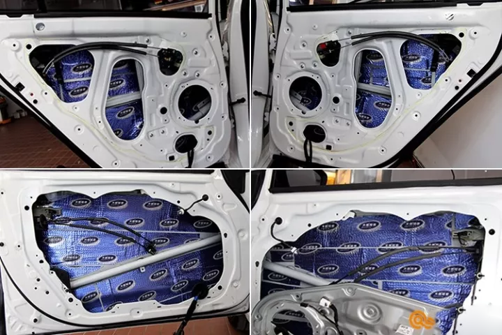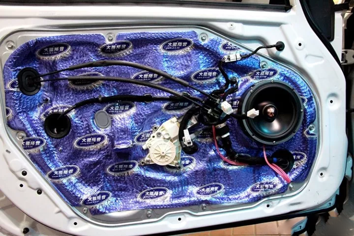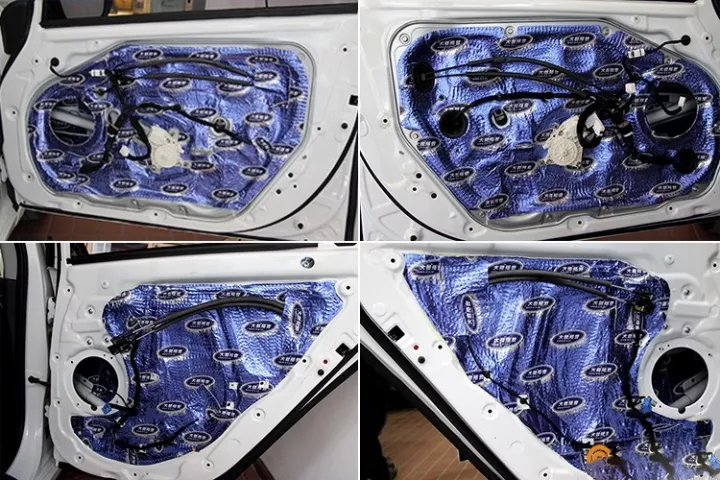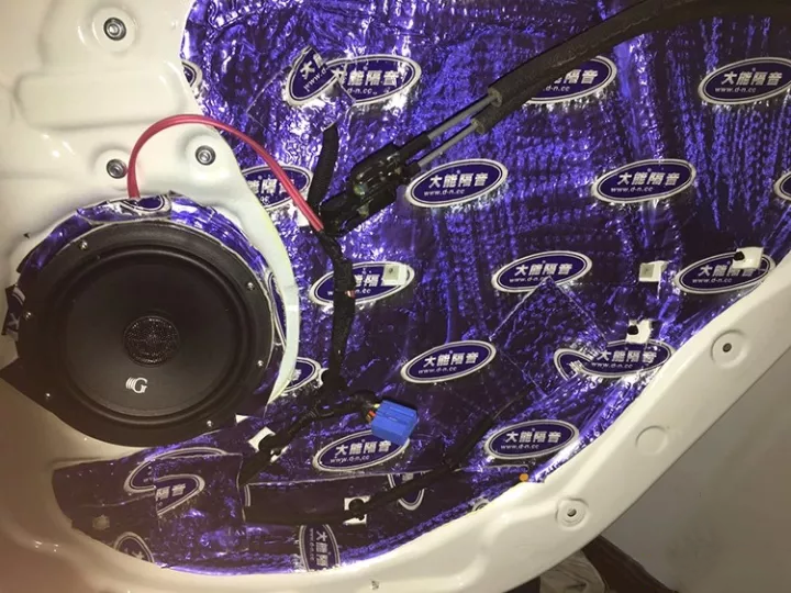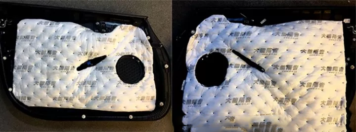 材料施工必須整張粘貼在車門(mén)上,讓車門(mén)可以形成一個(gè)箱體,提供給車門(mén)內(nèi)的喇叭一個(gè)良好的工作環(huán)境,音質(zhì)也有效的得到提升。