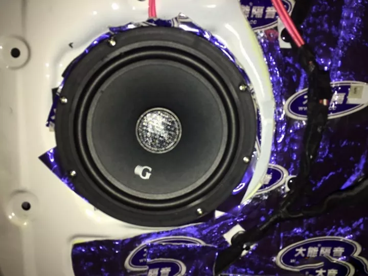 隔音貼條好之后,車門(mén)喇叭開(kāi)始安裝超高性價(jià)比黃金聲學(xué)GR 6.5寸中低音,平民價(jià)格,享受發(fā)燒音質(zhì)。