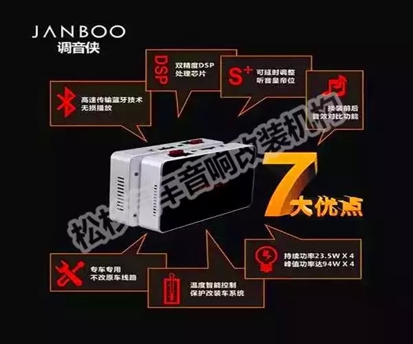 調(diào)音俠安裝后能夠迅速提升原車音響效果,其自帶的藍(lán)牙4.0可以高速傳輸藍(lán)牙高清無損音樂。內(nèi)置雙精度DSP帶電腦調(diào)音,定位聲場(chǎng)“皇帝位”,智能溫度控制94Wx4功放輸出。