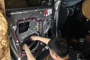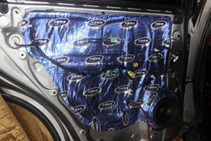 改裝前,車主先進(jìn)行了四門雙層隔音改裝,。第一層門板內(nèi)層條形隔音貼法,這是經(jīng)過試驗(yàn)總結(jié)出來的科學(xué)貼法,千萬不要誤以為是店家節(jié)省材料,能夠最有效的減少門板共振,而且計(jì)算好條形隔音材料的粘貼距離,比整張貼的難度更大;第二層門板外層整張貼法,有效增強(qiáng)門板氣密性和剛性,阻止外界噪音的侵入。
