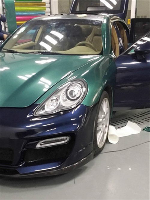 包圍完成后全車改色獵戶綠,全手工完成。師傅們做工很精細(xì),縫隙處處理很到位。