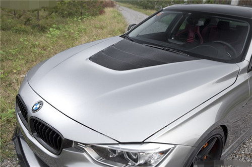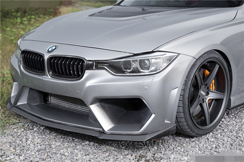 說(shuō)說(shuō)碳纖維包圍,從這帥氣的造型可以看出對(duì)于包圍的制造也算相當(dāng)專(zhuān)業(yè)了。前臉造型簡(jiǎn)潔犀利,沒(méi)有過(guò)多修飾,導(dǎo)風(fēng)口采用真空干碳纖材質(zhì),比濕碳纖有更高的密度,效果也更好。