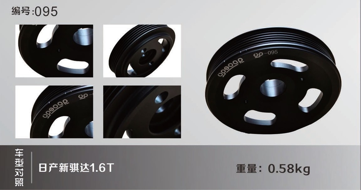 Upsaor輕量化曲軸皮帶盤(pán)- 采用航空超硬輕量化合金【7075鍛造】材料CNC加工中心制造工藝,經(jīng)過(guò)特殊陶瓷化表面處理之 產(chǎn)品的外觀和性能達(dá)到強(qiáng)度高!耐磨損!抗高溫!的這種陶瓷所具有的物理特性,加上產(chǎn)品兼顧了普通陶瓷制品還不具備的一些物理性能。比如高散熱! 外剛內(nèi)柔!這樣產(chǎn)品的 安全性和強(qiáng)度更加出色可靠!而且這種產(chǎn)品不需要維護(hù)保養(yǎng),型號(hào)對(duì)應(yīng)國(guó)內(nèi)常見(jiàn)車(chē)型