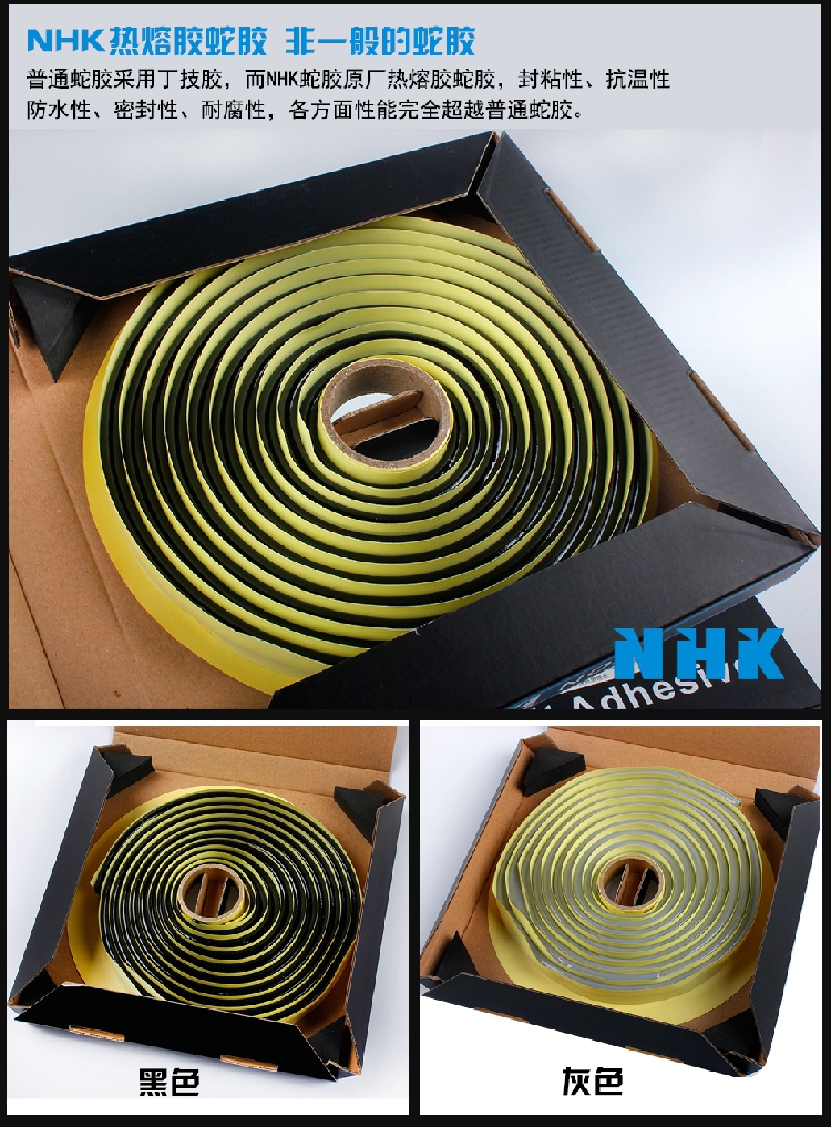NHK-高品質(zhì)進(jìn)口(藍(lán)版)熱熔蛇盤密封膠顏色分類: 黑色 灰色