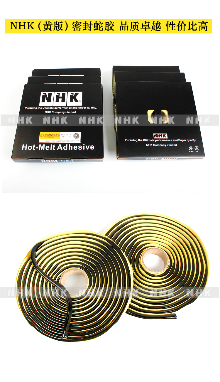 NHK高性價比(黃版)蛇盤密封膠NHK密封蛇膠,粘結(jié)度高、坑拉度強、址彈性好,不粘手,不漏水,不起霧,專業(yè)密封,具優(yōu)異耐化學(xué)性、耐侯性、耐腐蝕性