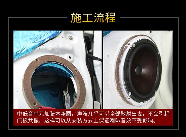 中低音單元加裝木墊圈,聲波幾乎可以全部散射出去,不會引起門板共振,這樣可以從安裝方式上保證喇叭音效不受影響。