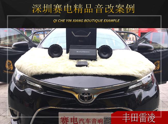 深圳賽電豐田雷凌汽車音響升級(jí)雷貝琴,今天這輛雷凌標(biāo)準(zhǔn)的入門(mén)級(jí)升級(jí),一臺(tái)四路功放推前聲場(chǎng),橋接推低音炮!全國(guó)汽車音響升級(jí)