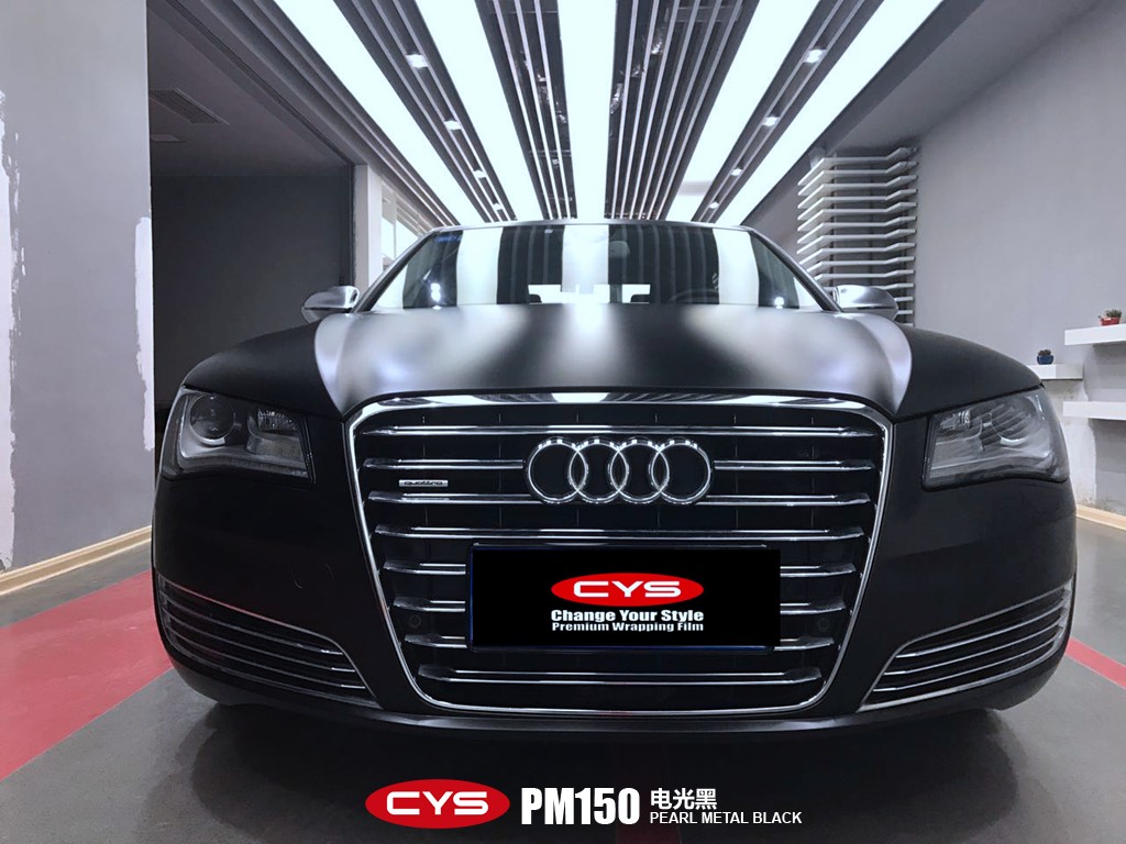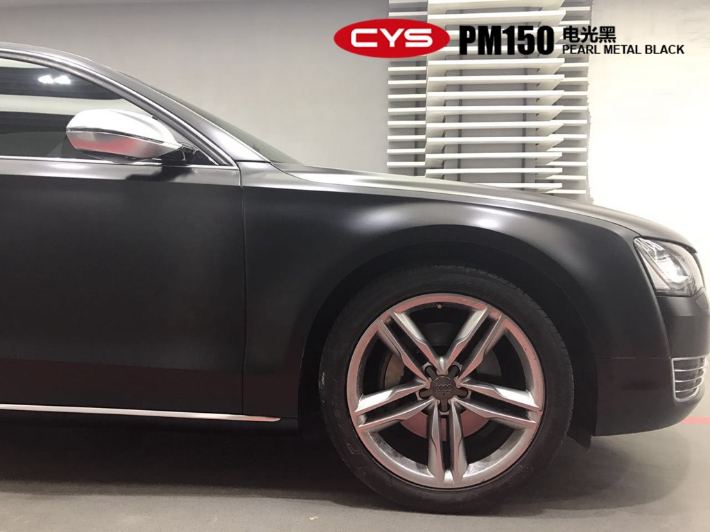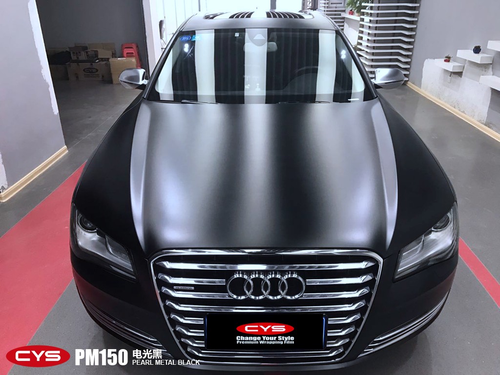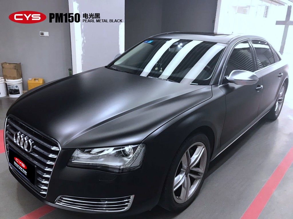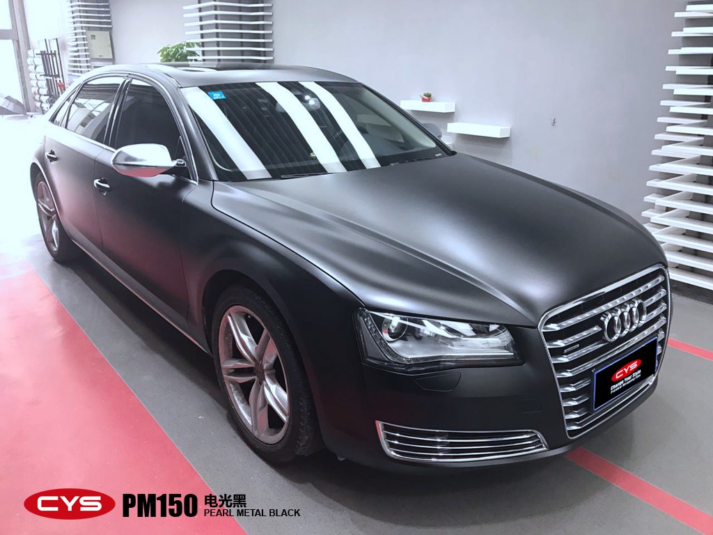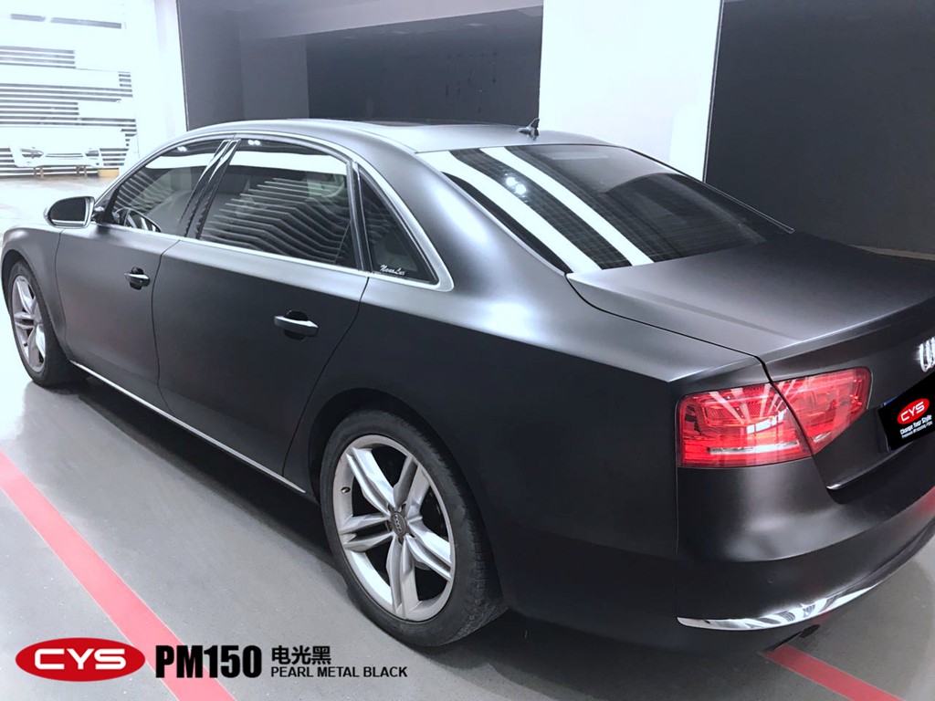 成都車身改色奧迪A8電光金屬黑改色貼膜