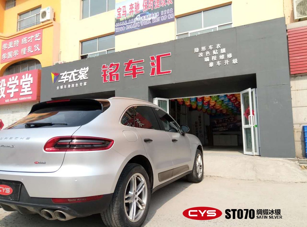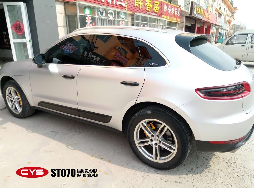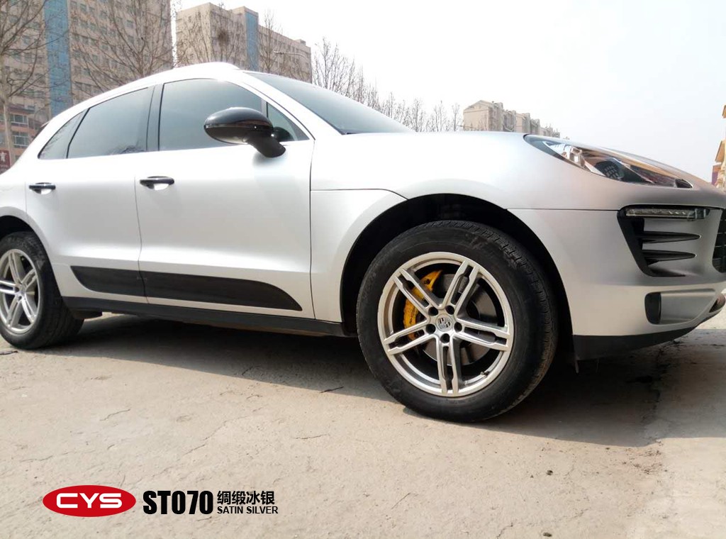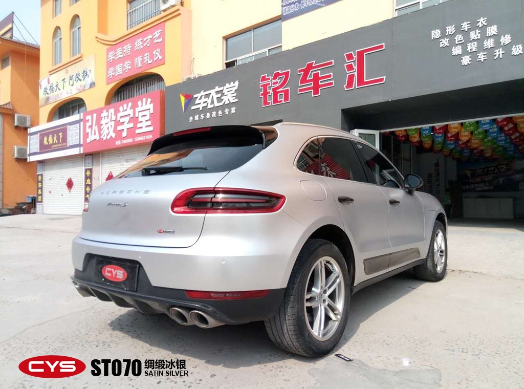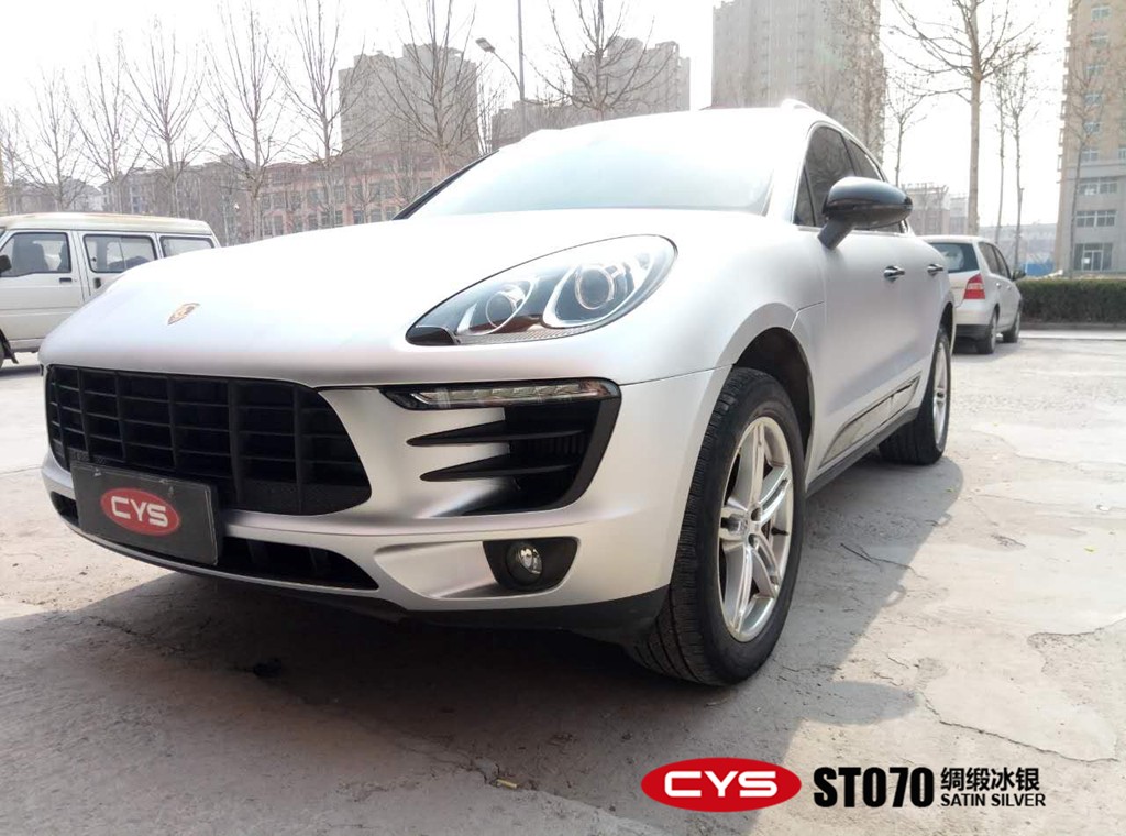 成都改色膜保時捷macan綢緞冰銀車身改色