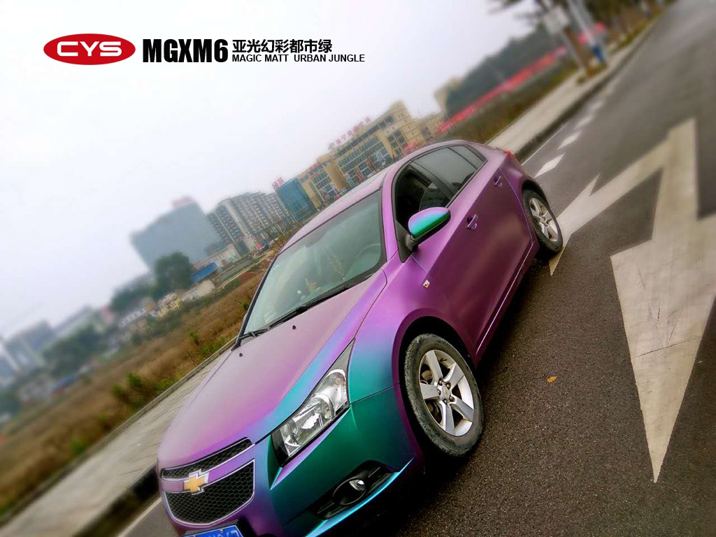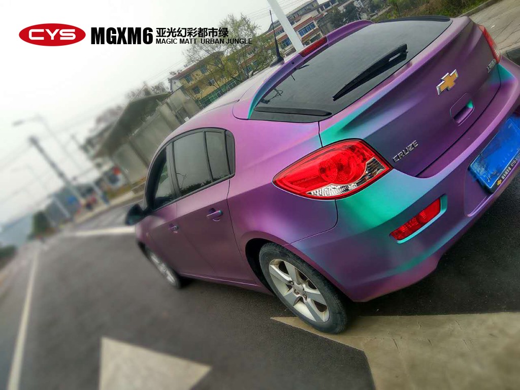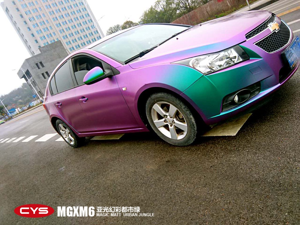 成都車衣裳科魯茲亞光幻彩都市綠車身改色貼膜