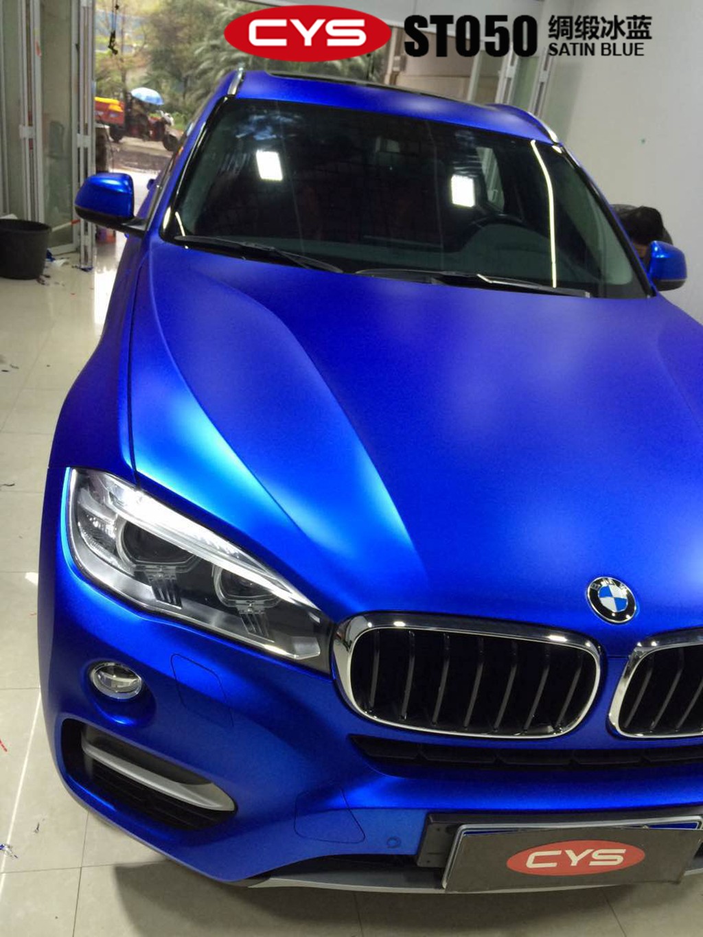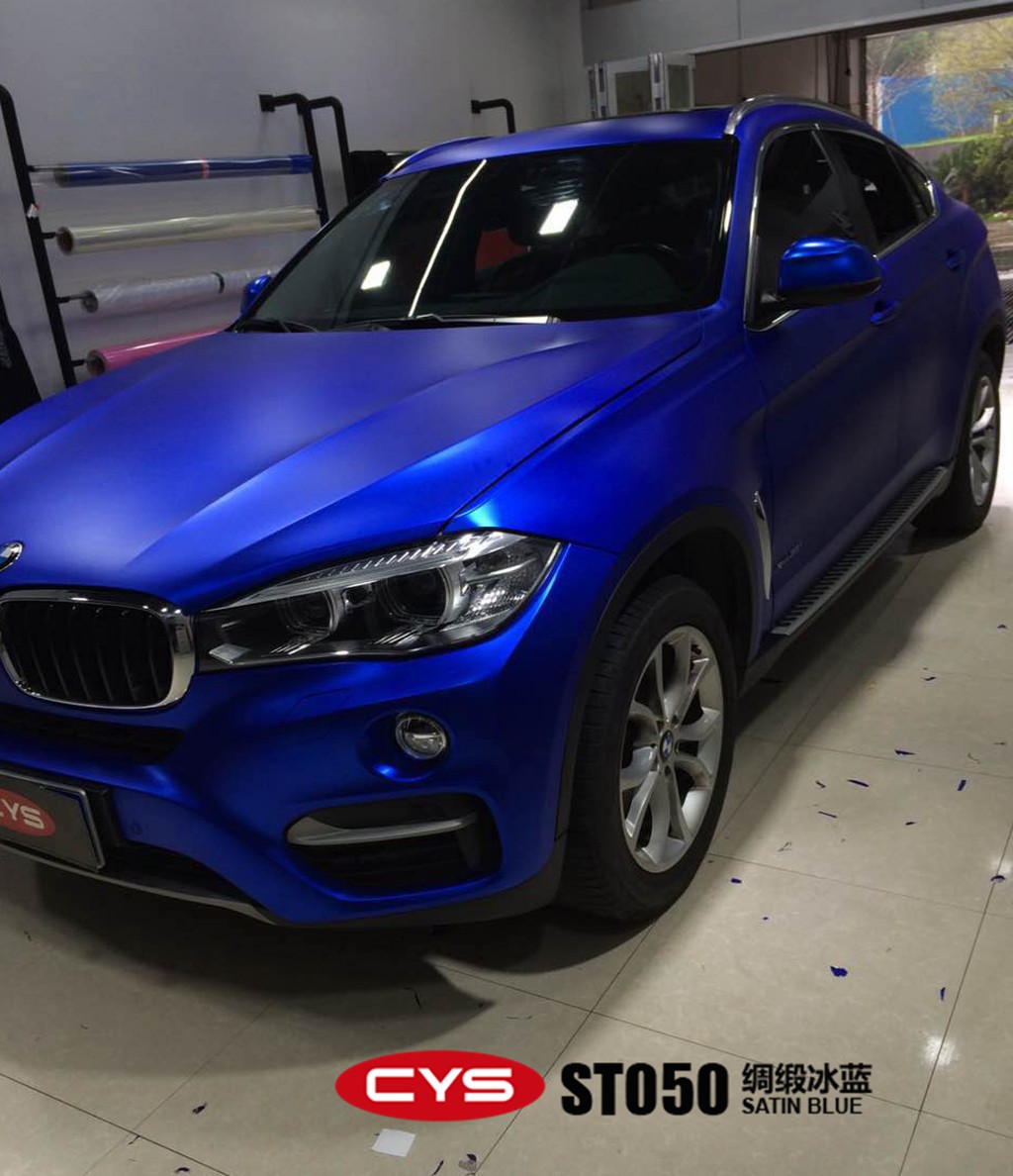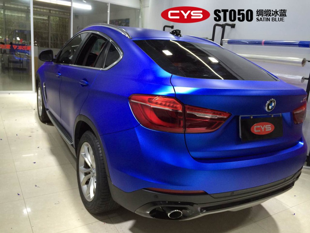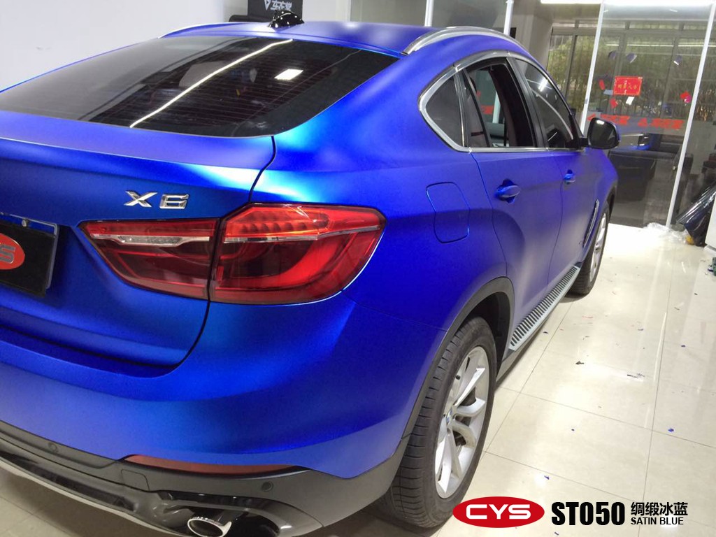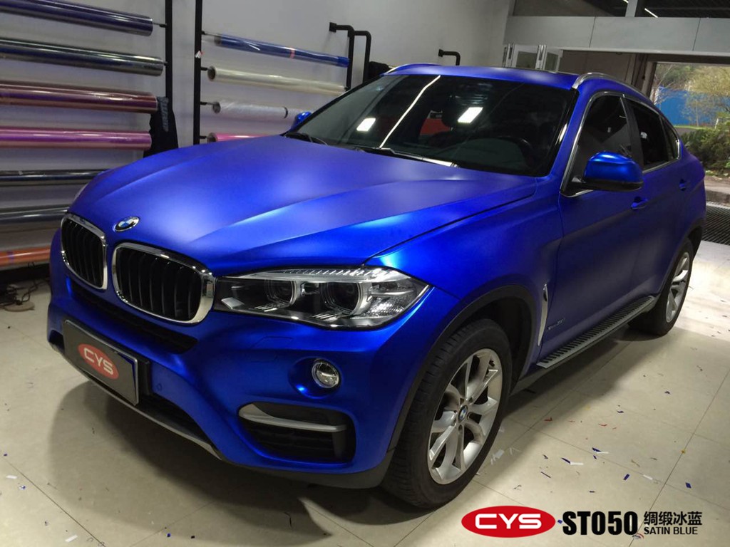 成都車衣裳寶馬X6綢緞冰藍車身改色貼膜