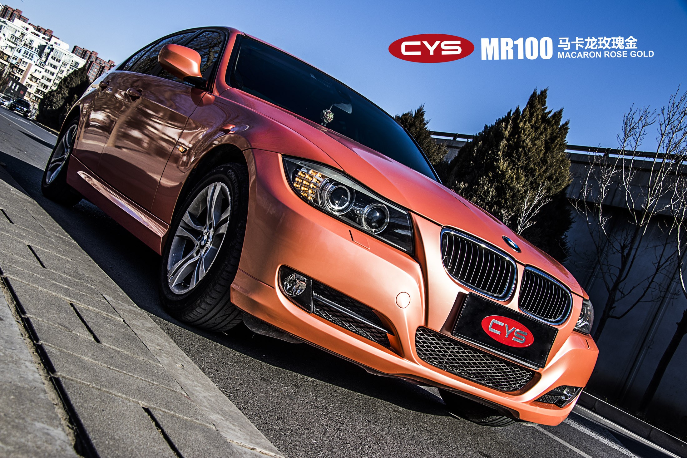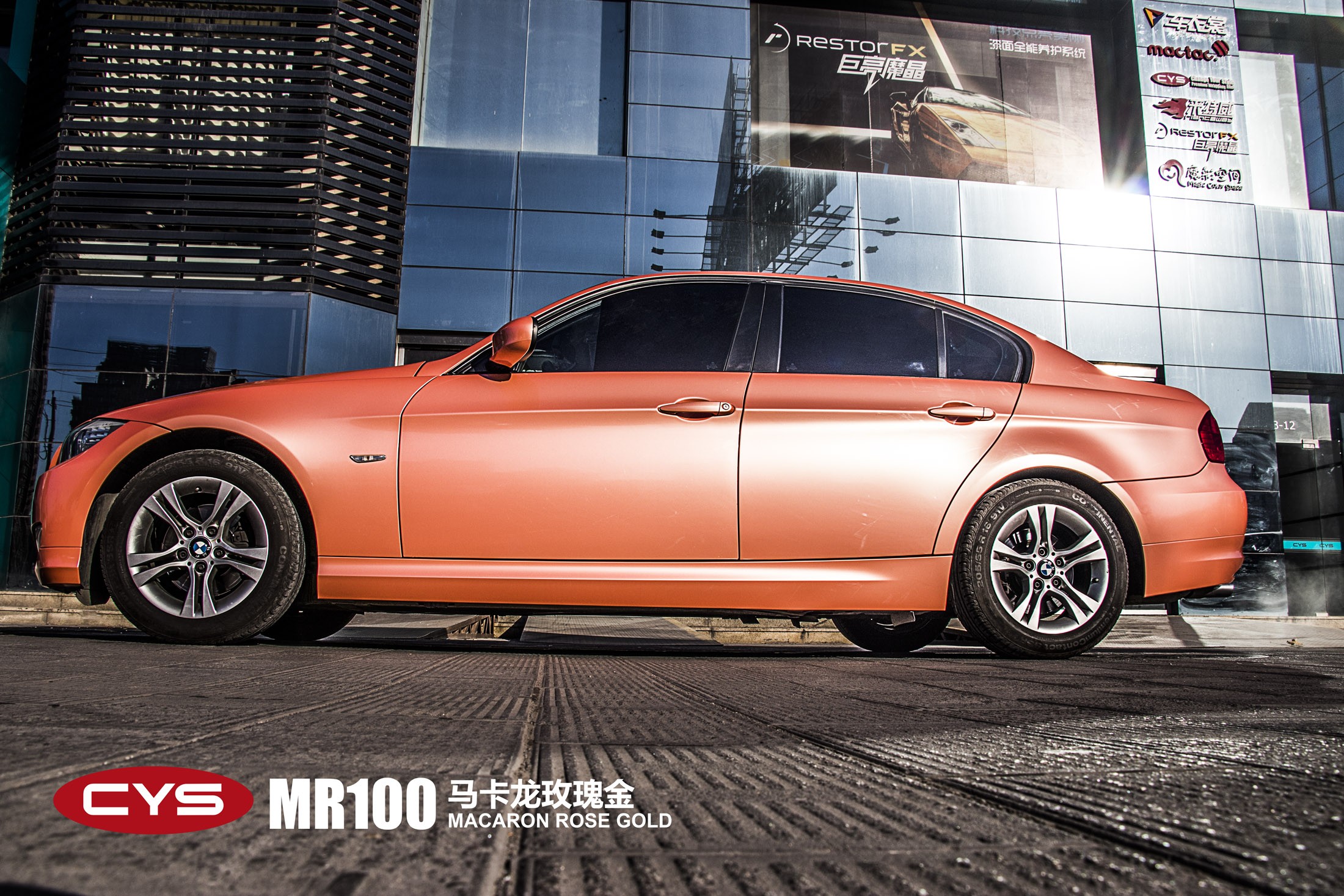 成都車身改色寶馬3系馬卡龍玫瑰金改色貼膜