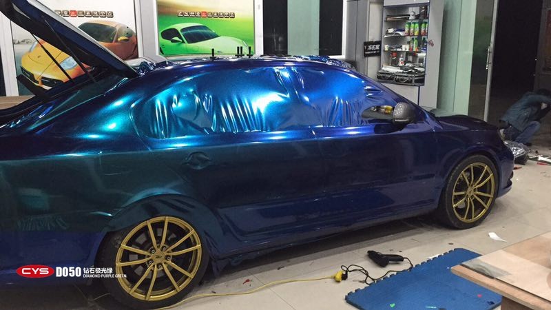 成都車(chē)身改色斯科達(dá)RS鉆石極光綠改色貼膜