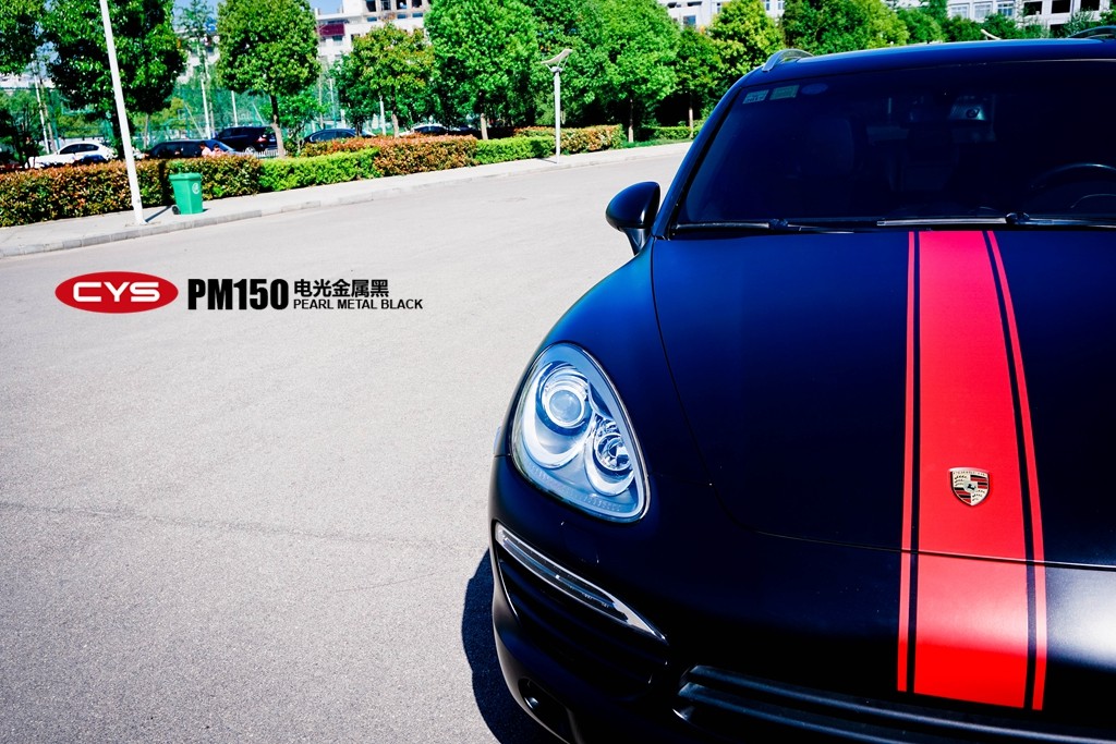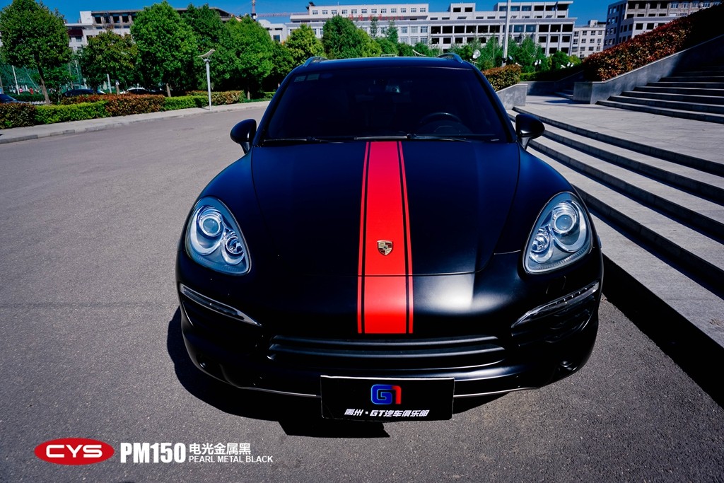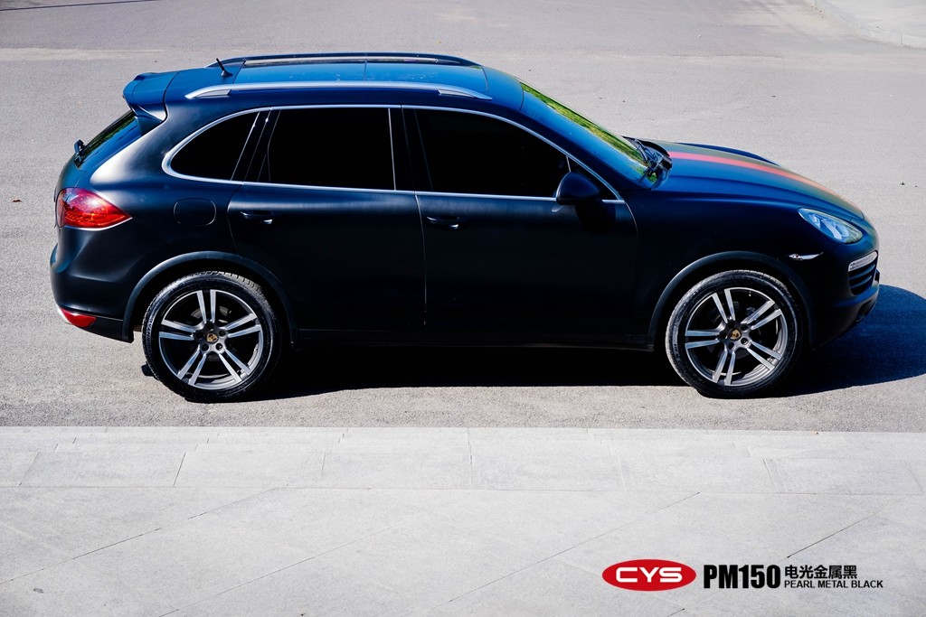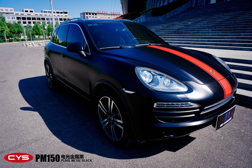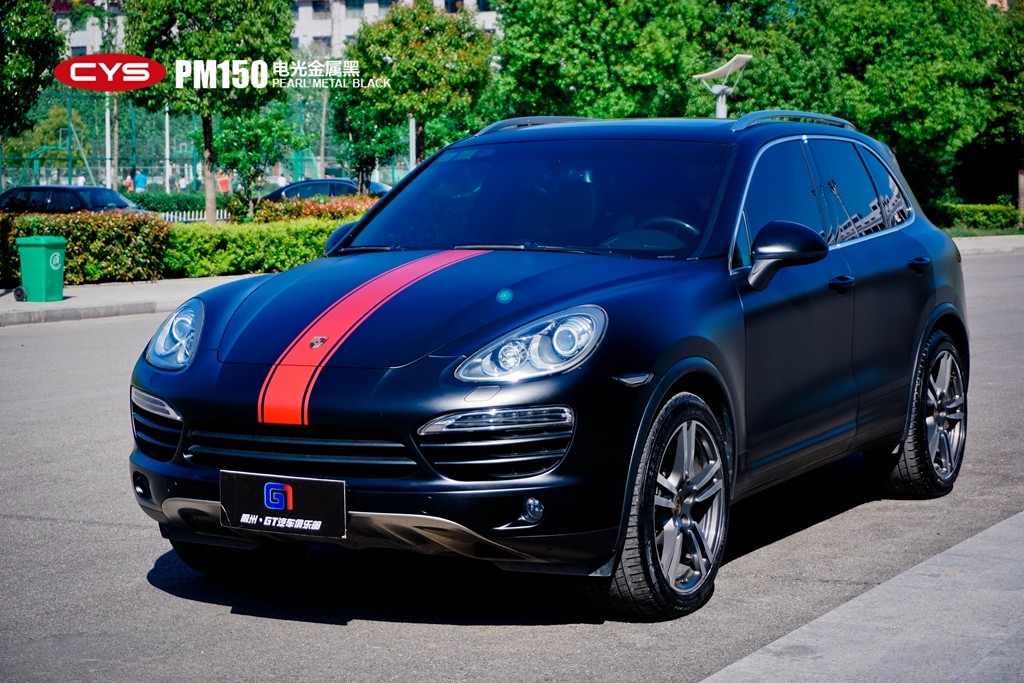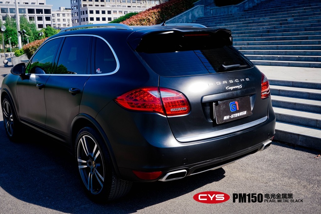 成都車衣裳保時捷卡宴電光金屬黑車身改色貼膜