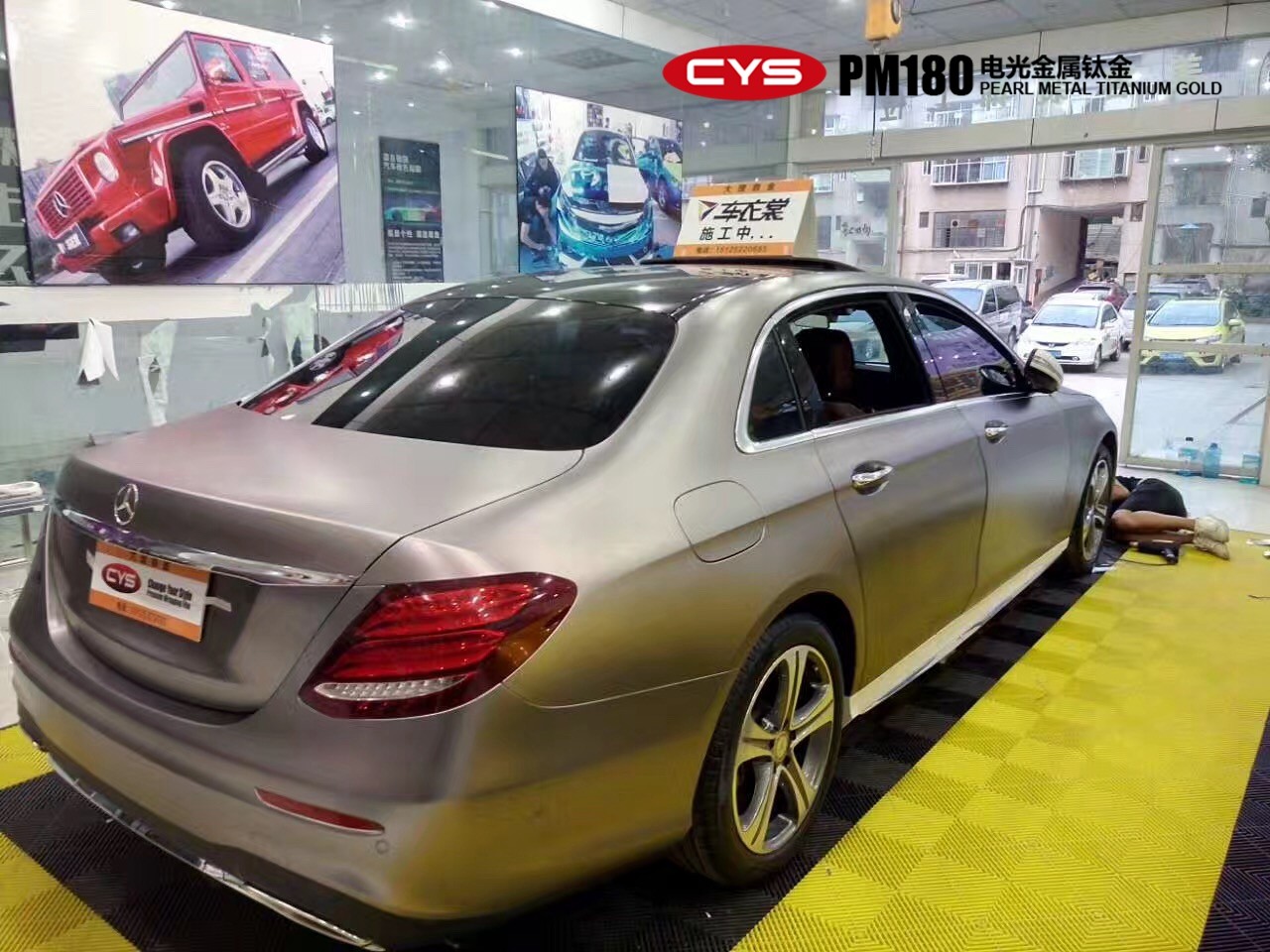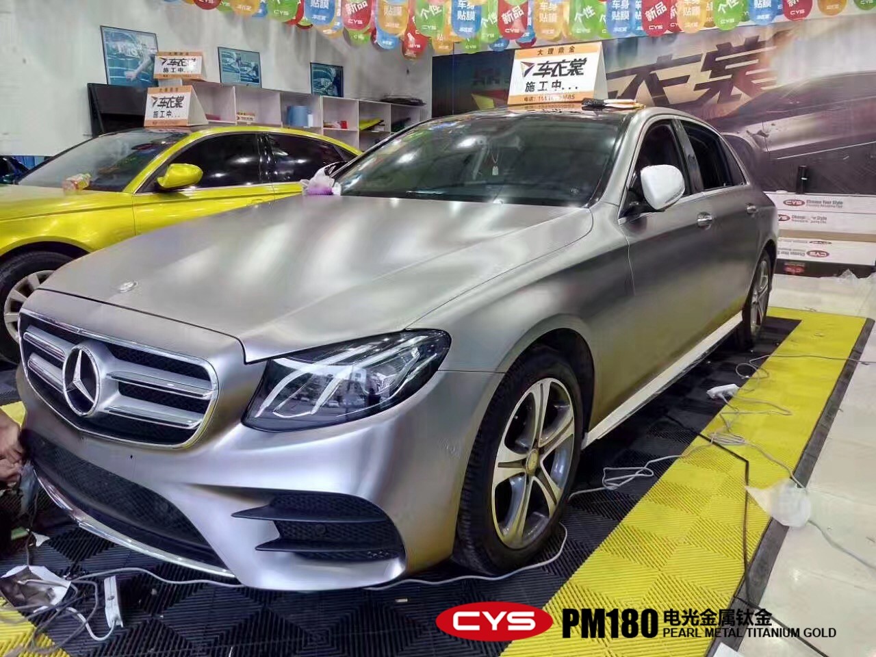 成都汽車改色奔馳E200電光金屬鈦金車身改色貼膜