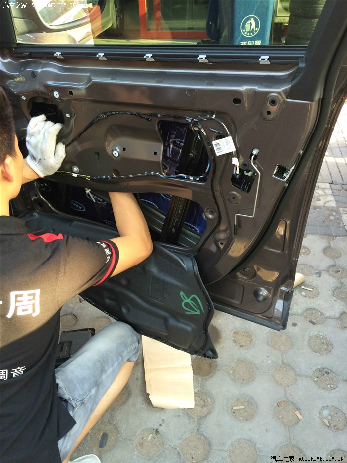 好了,開始施工了,專業(yè)技師仔細(xì)耐心的拆門板,雖然是無(wú)損改裝,但新車第一次,心疼中。。。