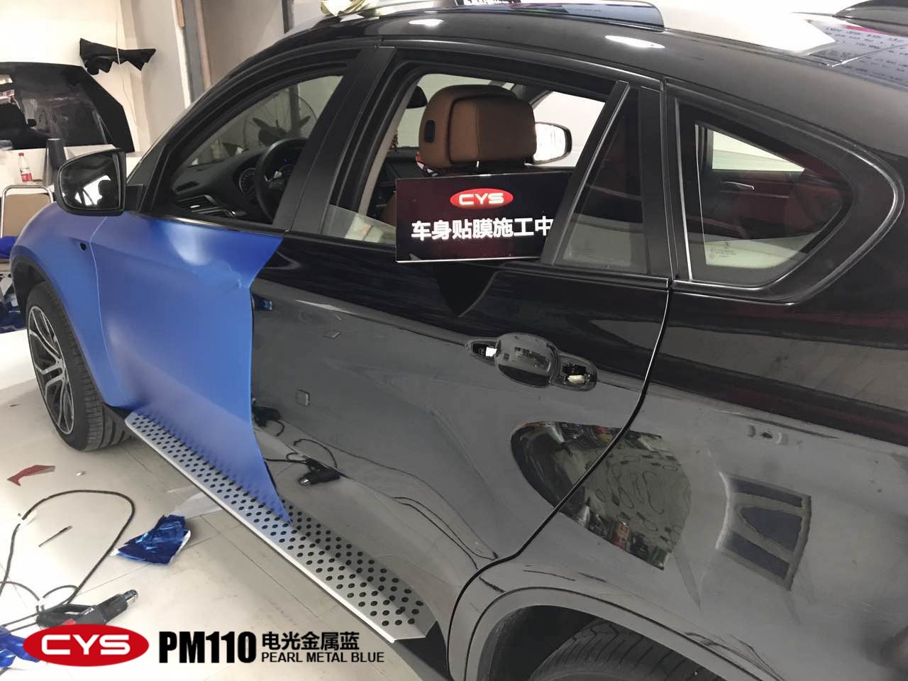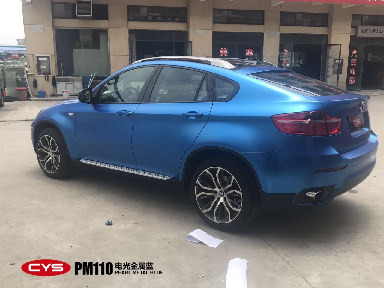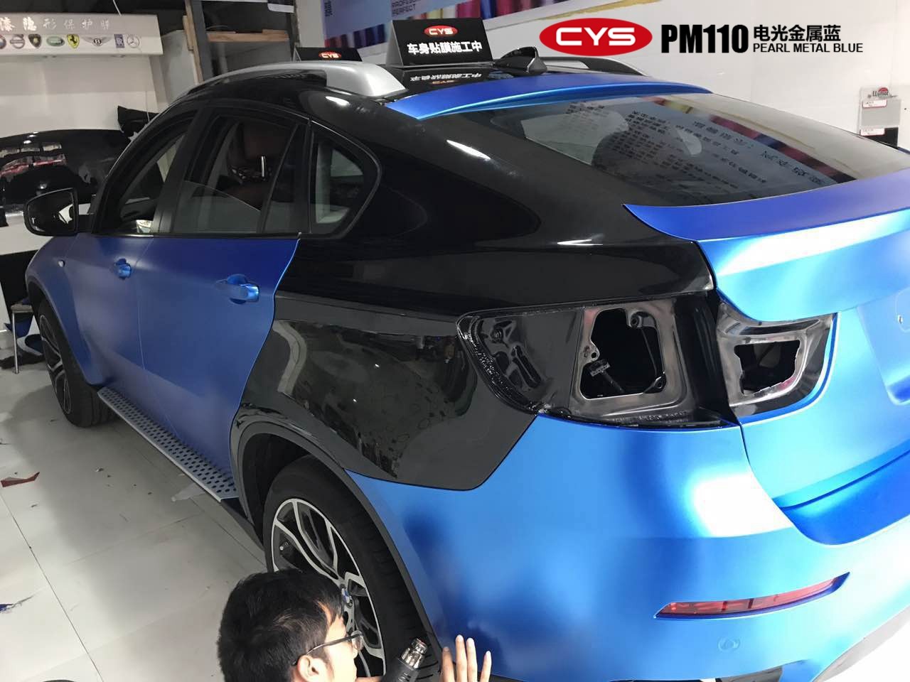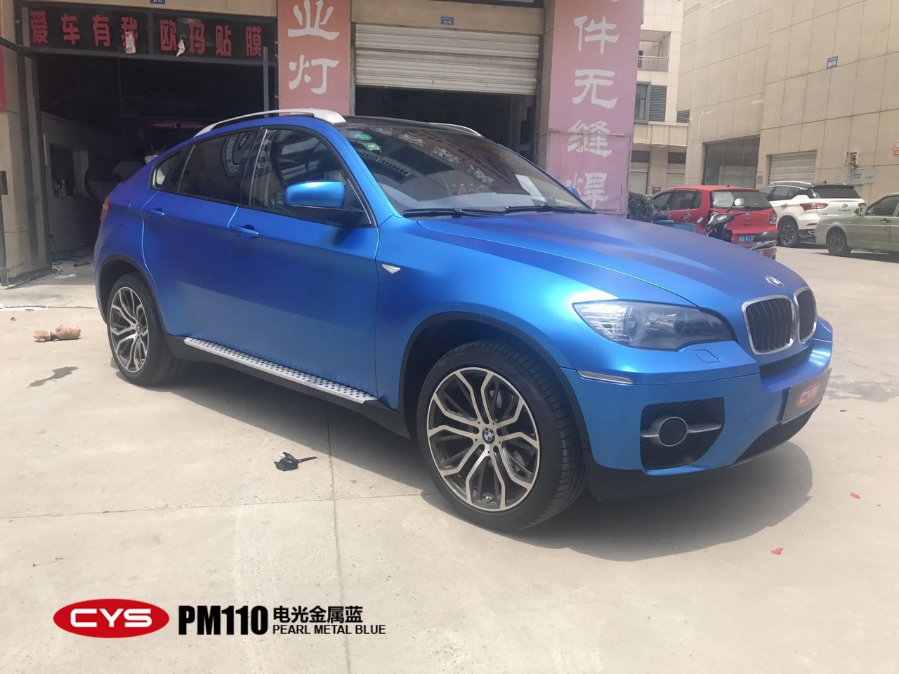 成都寶馬X6電光金屬藍(lán)汽車改色貼膜