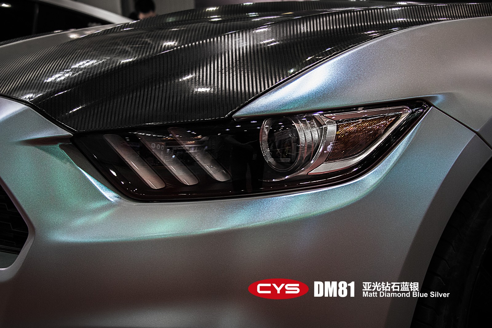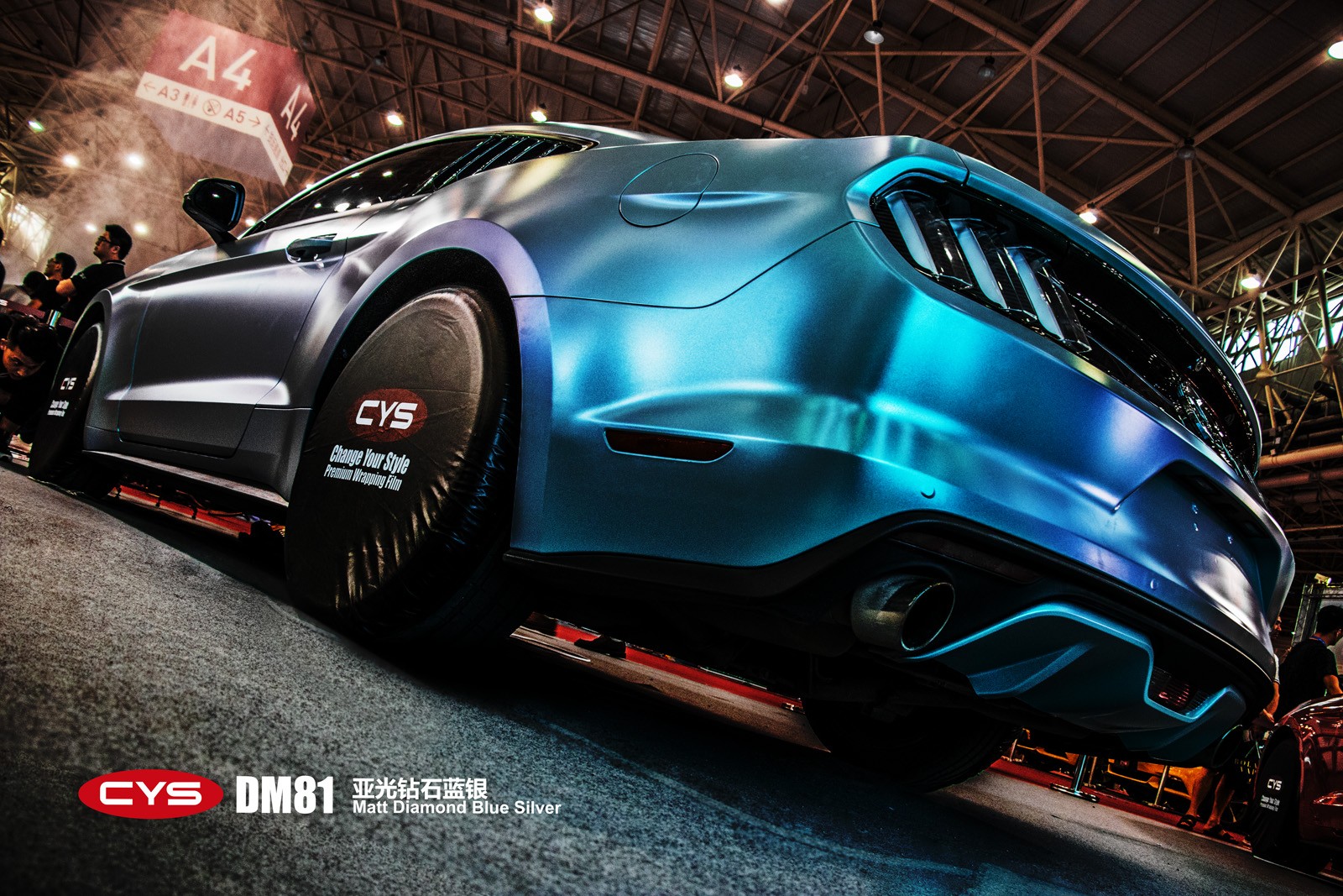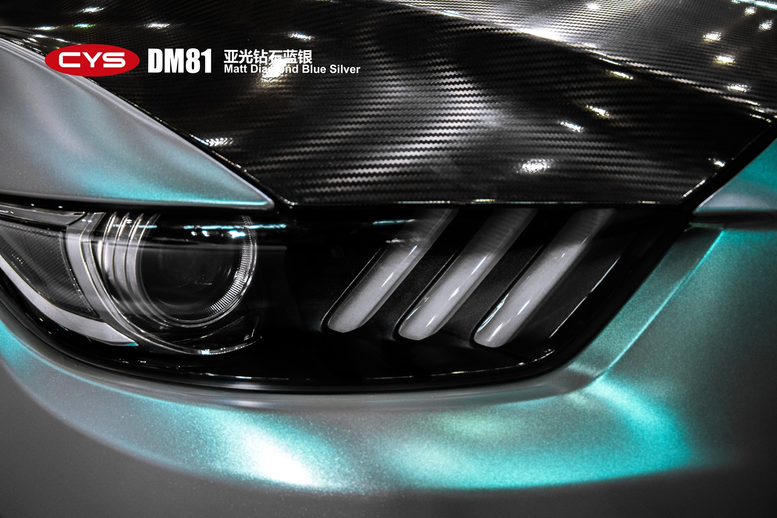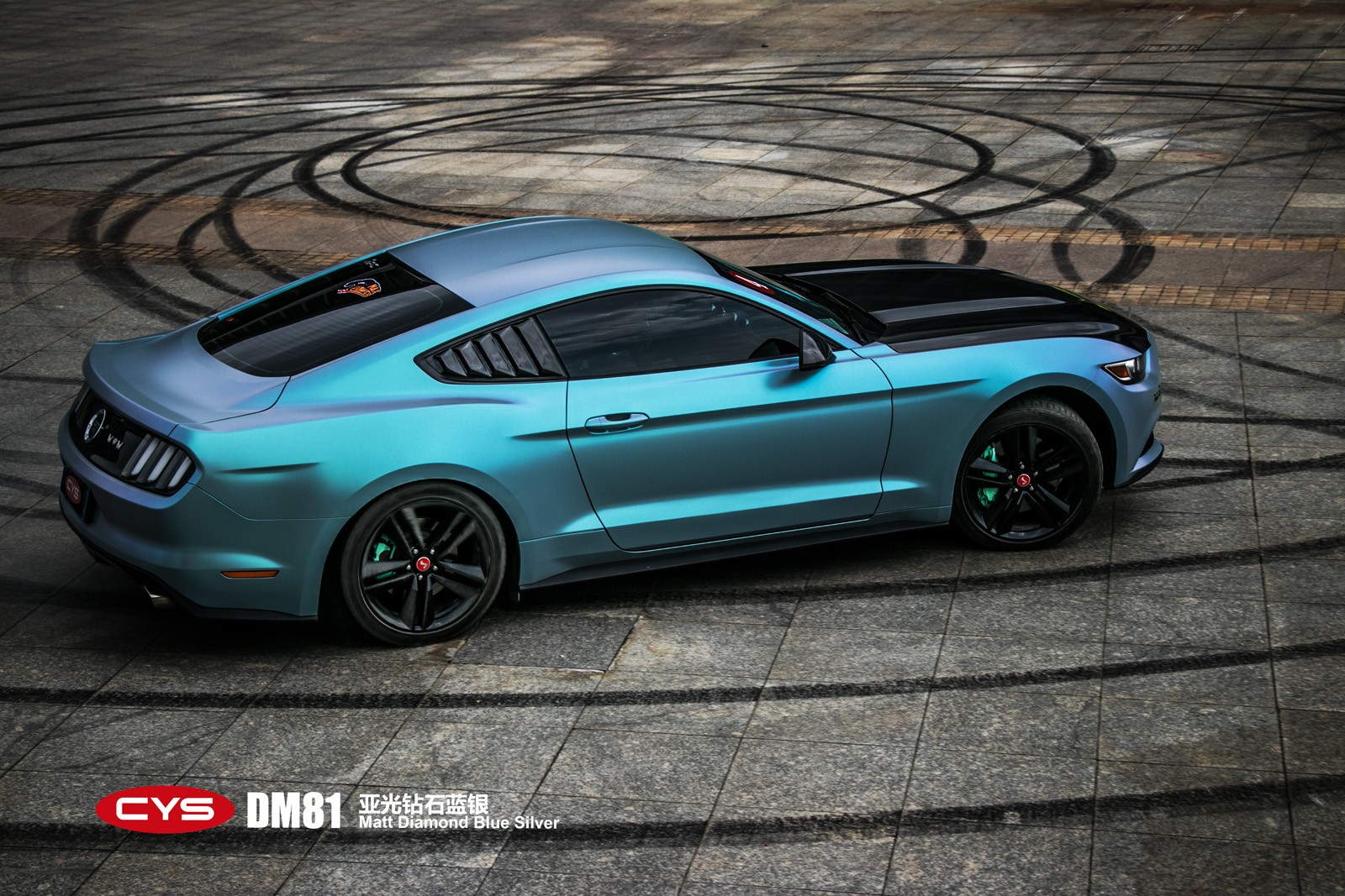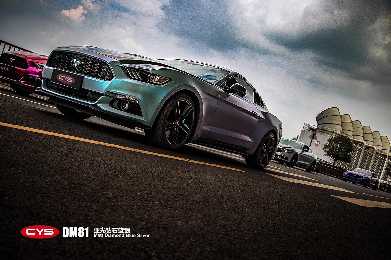 福特野馬從誕生之日起,就賦予了速度與激情。四蹄蹬開的一匹野馬,論江湖誰(shuí)與爭(zhēng)鋒,任其馳騁。今天我們?yōu)榇蠹艺故镜氖且慌_(tái)裝貼了車衣裳CYS鉆石系列亞光鉆石藍(lán)銀改色膜的野馬。特殊的膜面效果如鉆石般點(diǎn)綴,在陽(yáng)光下晶瑩閃亮。