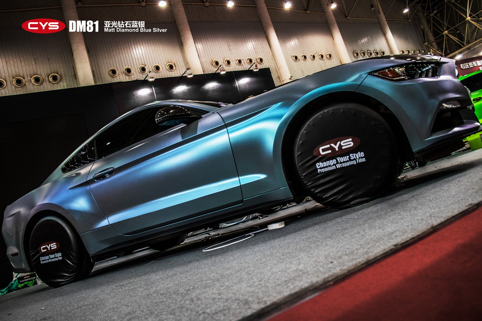 成都車衣裳福特野馬亞光鉆石藍(lán)銀車身改色貼膜