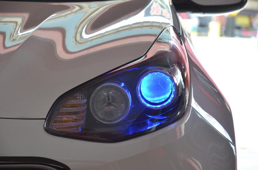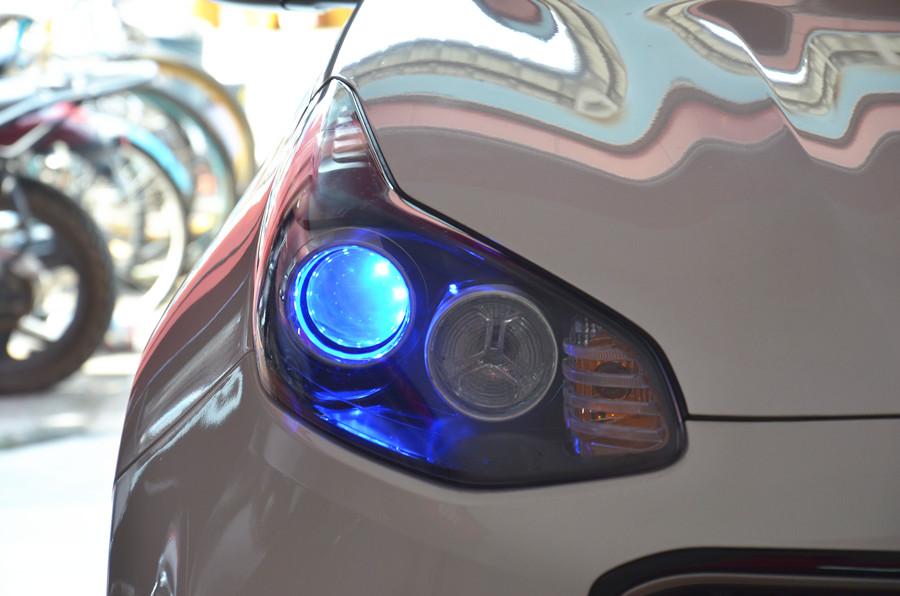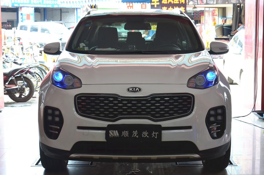 起亞KX5的外形能俘獲不少年輕消費(fèi)者的心,它在細(xì)節(jié)方面也有很多創(chuàng)新,比如它的復(fù)眼式LED日間行車燈,以及四顆LED燈泡組成的霧燈,彰顯個(gè)性的同時(shí),也有不錯(cuò)的辨識度。起亞KX5原車大燈為遠(yuǎn)近一體鹵素?zé)?,搭配鹵素透鏡夜間照明效果非常不如意安全隱患也大為了提高夜間行車安全,車主琢磨車燈升級的事情也有不短時(shí)間了,經(jīng)過私底下的了解比較最終選擇我們順茂改燈敲定了改裝方案,并提前預(yù)約了前來升級。車主一步到位,升級氙氣燈加雙光透鏡,再來個(gè)藍(lán)色惡魔眼點(diǎn)綴。