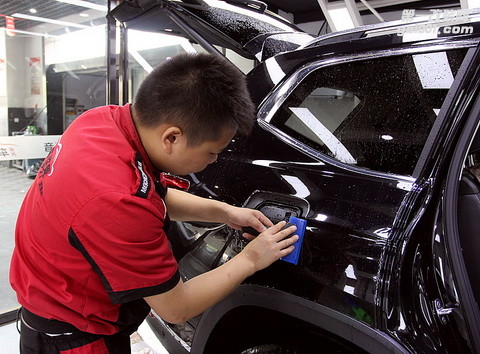 大眾途昂全車美國XPEL隱形車衣施工前,對漆面進行徹底清潔處理: