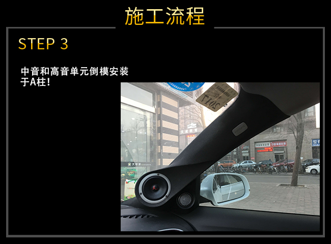 ?原車沒有高音位置,為了獲得更高的角度,高音和中音選擇倒模安裝于A柱,整個聲場會變得寬廣,高音聽起來更通透靈動。