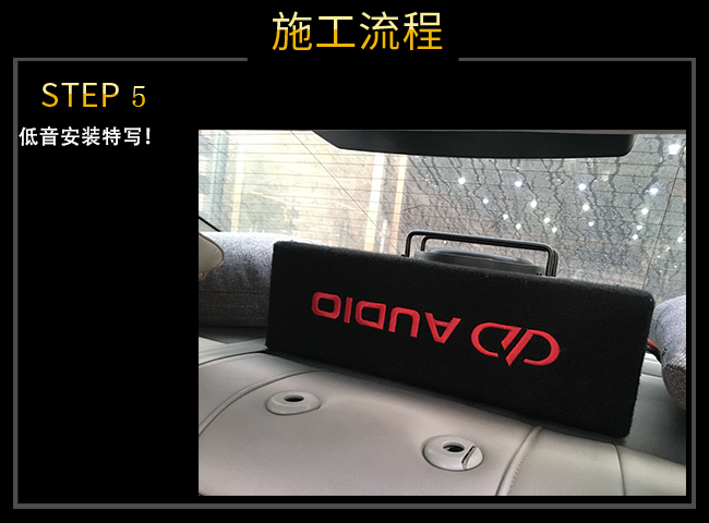 ?低音并沒有選擇安裝于后備箱,而是安裝于后座椅后方,為整個聲場提供震撼的低音下潛!