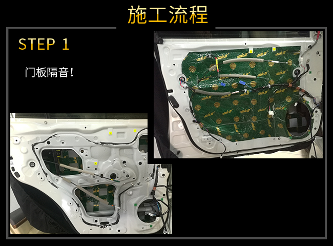 原車門板拆開后,里面只有一層薄膜,絲毫沒有隔音的作用。門板內(nèi)層使用條形貼法有效降低共振,外層整張隔音降噪效果顯著!