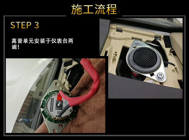?高音單元安裝于儀表臺兩端,有效提升聲場層次感!背部喇叭線用熱縮管進(jìn)行保護(hù)!