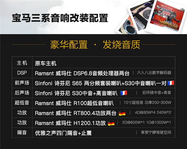通過加裝DSP和功放整套音響系統(tǒng)結(jié)象力與形體感都出來了,能夠完美展現(xiàn)讓人聲和樂器聲的形體,讓音像更浮凸,更具有立體感,讓音樂的輪廓陰影變得更清晰、動聽。