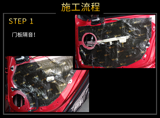 車門位置做標(biāo)準(zhǔn)的四門雙層隔音,做好之后可以有效的降低風(fēng)噪和共振噪音,而且會形成一個(gè)類似箱體的空間,有效的幫助音響效果的發(fā)揮,用手敲擊車門或者是來回開關(guān)車門的時(shí)候也會感覺到車門變得更加厚實(shí)。