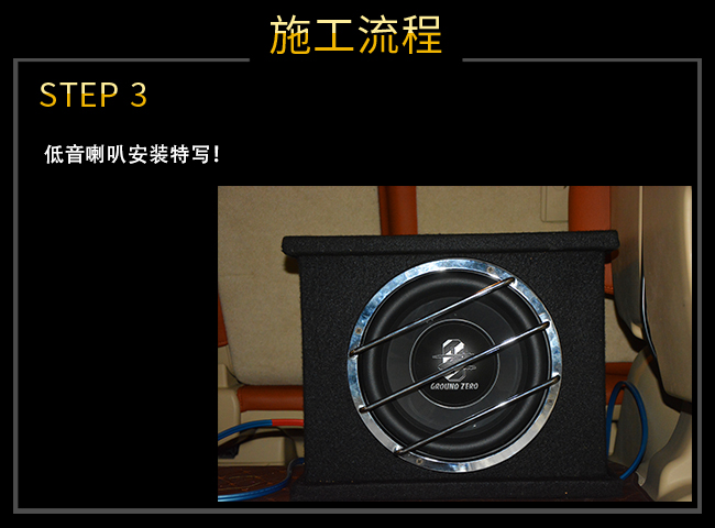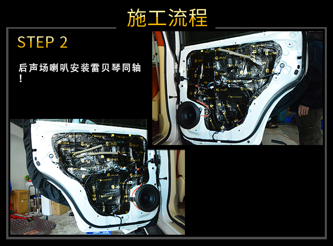 前聲場(chǎng)丹拿232喇叭安裝于經(jīng)過隔音處理的車門上,用木墊把喇叭固定在門板上,喇叭線用熱縮管包裹,外層增加一個(gè)聚音圈,增強(qiáng)音質(zhì)表現(xiàn)力!