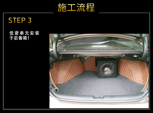 低音箱安裝于后備箱,方便靈活,不占用車內(nèi)空間!