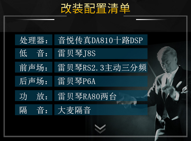 兩臺處理器隱藏安裝,調(diào)節(jié)喇叭,優(yōu)化整個聲場,讓舞臺感更加強(qiáng)烈!