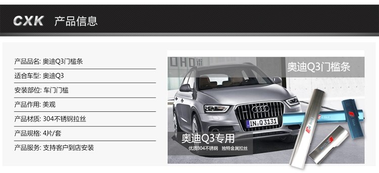 [商品--外觀改裝裝飾]奧迪Q3門檻條 Q3專用改裝 奧迪Q3門檻條 新款奧迪Q3迎賓踏板 裝飾