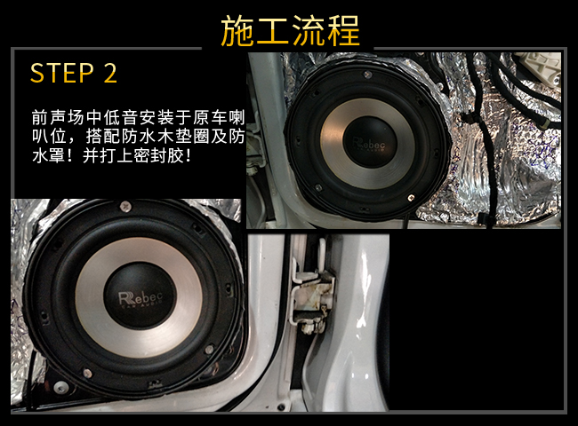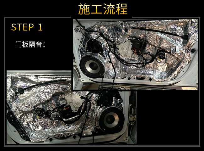 車門還算厚實,但同樣也阻擋不了噪音產(chǎn)生的共振!所以先開始做四門雙層隔音,保障車門噪音降低,以免影響喇叭的發(fā)音效果。使低音喇叭打出的效果更佳干凈有力度!