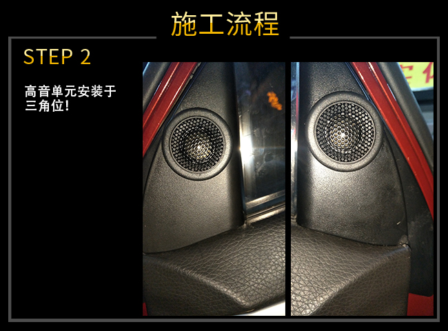 高音單元安裝于三角位!這是常見的安裝位置,意在保證高音指向性!