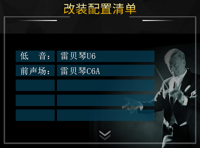 ?前聲場喇叭安裝雷貝琴C6A,能滿足大多數(shù)音樂愛好者的要求,瞬態(tài)響應(yīng)較好,低頻較為豐滿,有彈性,音色偏曖,高頻表現(xiàn)細(xì)膩甜美,可以用主機(jī)直接推動,是入門級系統(tǒng)的首選套裝揚(yáng)聲器。?