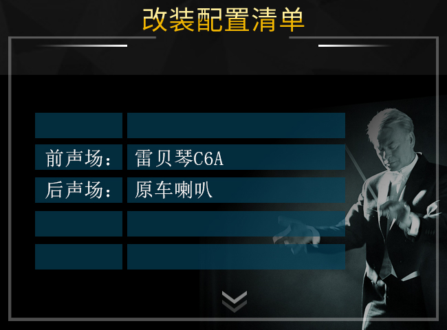 前聲場(chǎng)喇叭中低音安裝雷貝琴C6A,這是一款入門級(jí)發(fā)燒喇叭,音質(zhì)飽滿耐聽(tīng),特殊的涂層使得它聲音重播度良好,靈敏度高,無(wú)需功放便可以享受好音質(zhì)!