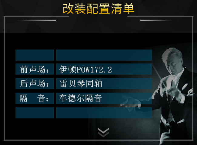 前聲場(chǎng)喇叭安裝伊頓POW172.2,中低音安裝于原車(chē)?yán)任?,中低音單元使用了雙層玻纖紙質(zhì)音盆,所以其播放出來(lái)的音樂(lè)清晰細(xì)膩、層次感分明。