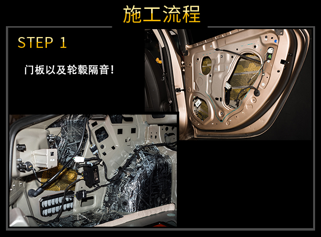 為了能給喇叭一個(gè)更好的播放環(huán)境,先給四門做減震隔音,減小喇叭與車門的共振;之后再做密封隔音讓車門形成一個(gè)類似箱體的環(huán)境,輪轂部位同樣進(jìn)行隔音處理,減少胎噪!