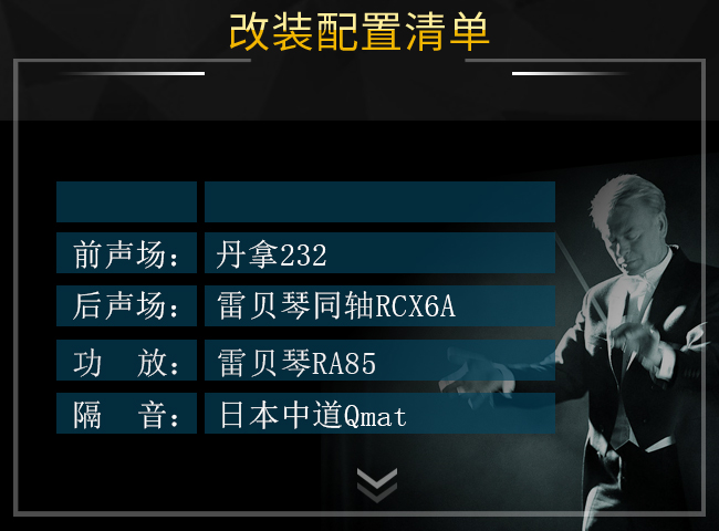 前聲場(chǎng)喇叭安裝丹拿232,析力極高、控制力極強(qiáng)的頂級(jí)功放水準(zhǔn),音色溫暖潤(rùn)人,屬于很耐聽(tīng)的類型。更難得的是其在大動(dòng)態(tài)保持張弛有度的同時(shí),對(duì)細(xì)膩情感的精準(zhǔn)撲捉同樣出彩。