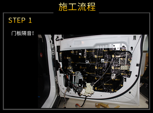 原車門(mén)板較為空洞,無(wú)法對(duì)噪音有效的隔絕,所以車門(mén)需要進(jìn)行雙層隔音處理,內(nèi)層條形貼法止震,外層整張隔音降噪,使車門(mén)形成類似箱體的靜謐結(jié)構(gòu)!?
