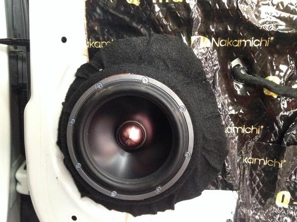 黃金聲學(xué)GR-165.2的中低音部分還是原車位置安裝,整個門板都是有經(jīng)過隔音處理,為發(fā)生單元打造了一個良好的發(fā)生環(huán)境。