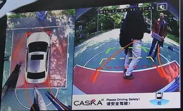 通過位于前后以及兩側(cè)后視鏡分布的四個攝像頭,采集周圍景象,經(jīng)過計算機處理后,將集成畫面顯示在車內(nèi)多媒體屏幕中,能獲得和無人機一般的鳥瞰效果。