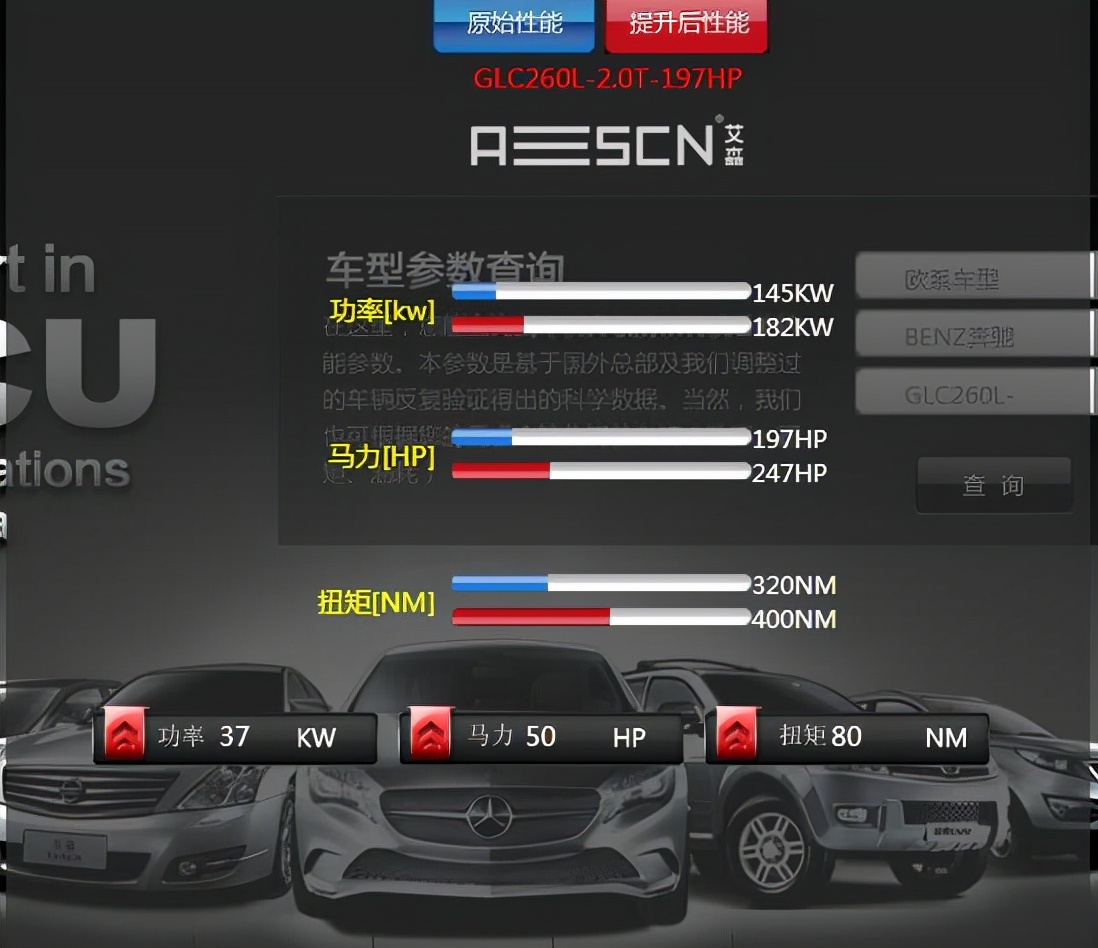 艾森發(fā)布奔馳GLC260 2.0T程序方案:一切以安全、穩(wěn)定為前提,在不損傷發(fā)動(dòng)機(jī)壽命前提下,將動(dòng)力優(yōu)化至最佳,同時(shí)符合車主的駕駛需求,性能參數(shù)如下: