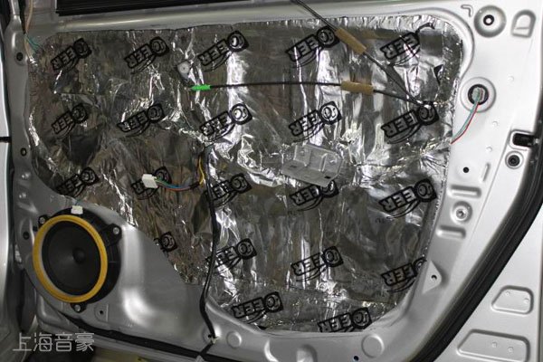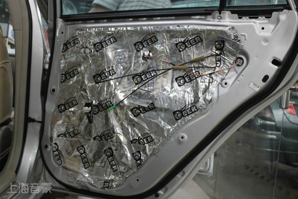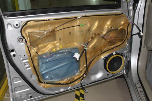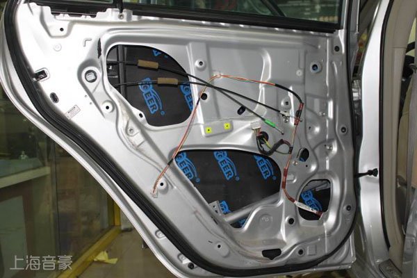 第一層:車門里層,進行車德爾隔音減震施工,帖隔音減震材料
