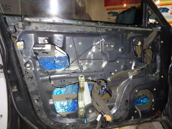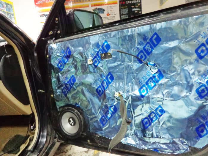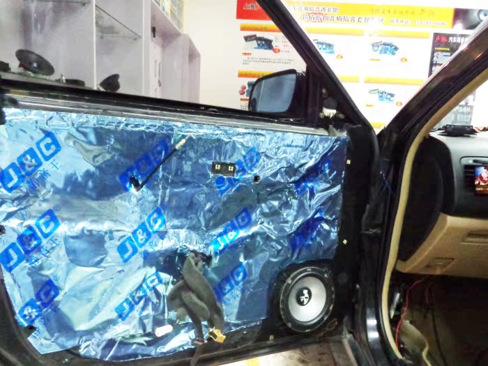 四門的第一層隔音減少門板在路面行駛是的抖動(dòng),接下來我們隊(duì)門板做第二層隔音讓門板形成箱體,讓喇叭發(fā)揮到最佳效果!