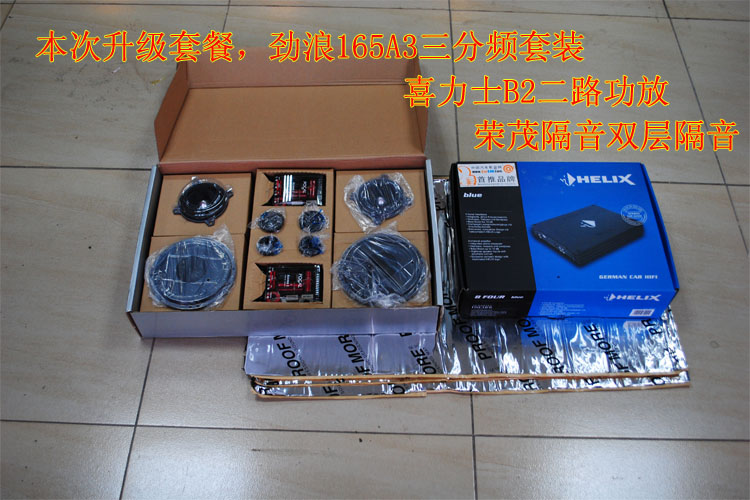 本次升級(jí)的套餐勁浪165A3 三分頻套裝喇叭喜力士B2 二路大功率功放榮茂隔音